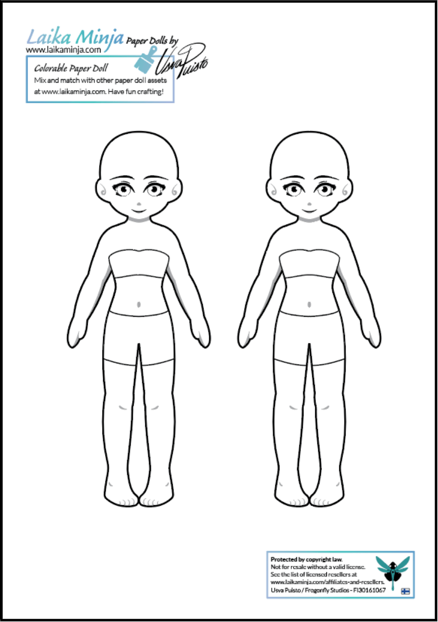 Colorable Laika Minja Paper Doll, ready to print and decorate as you like!